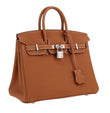 Birkin 25 Bag In Gold Togo Leather With Palladium (silver) Hardware by Hermès is a structured bag created to balance everyday practicality with a clean, polished look.
